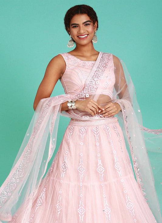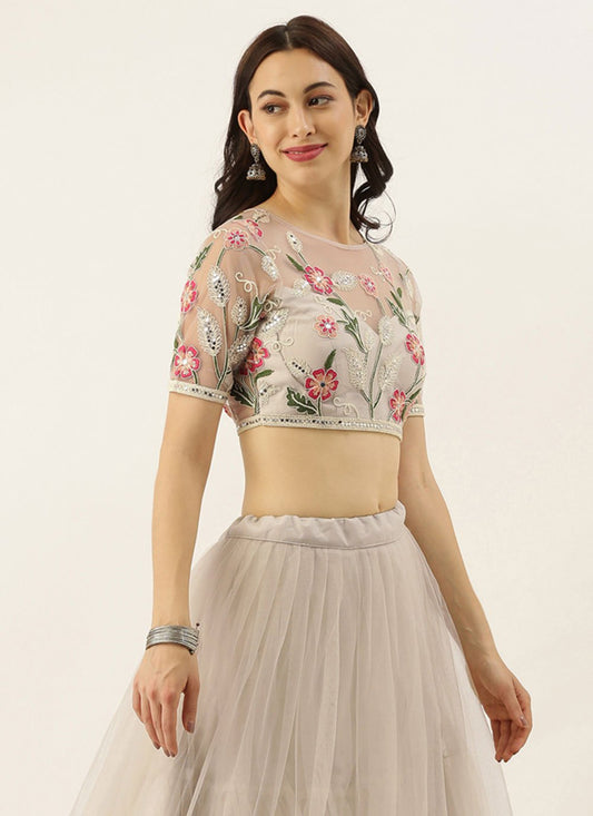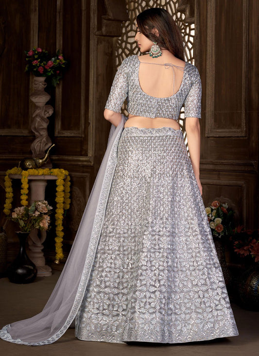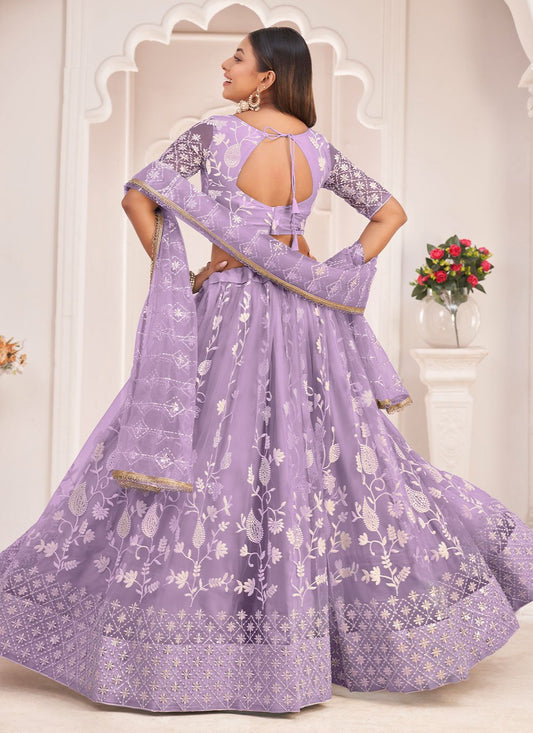 Lehenga Choli Net Lavender Embroidered Lehenga