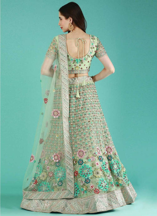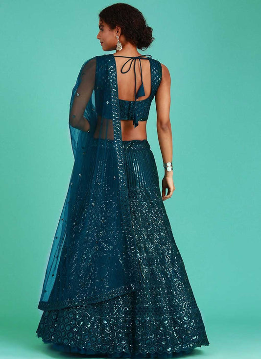Lehenga Choli Net Turquoise Embroidered Lehenga