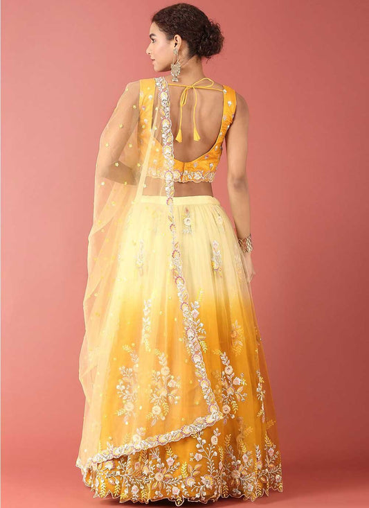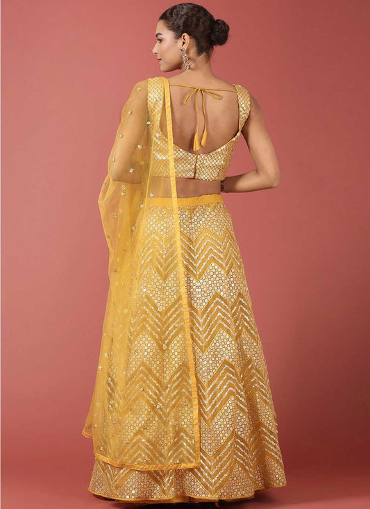 Lehenga Choli Net Mustard Embroidered Lehenga