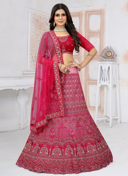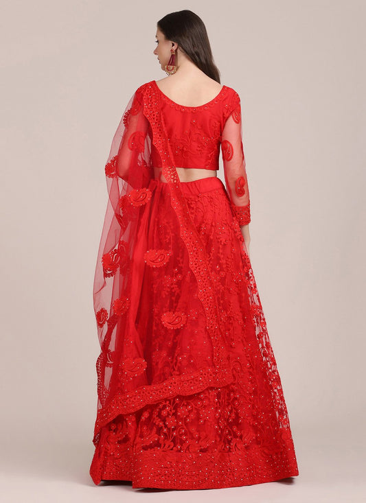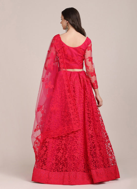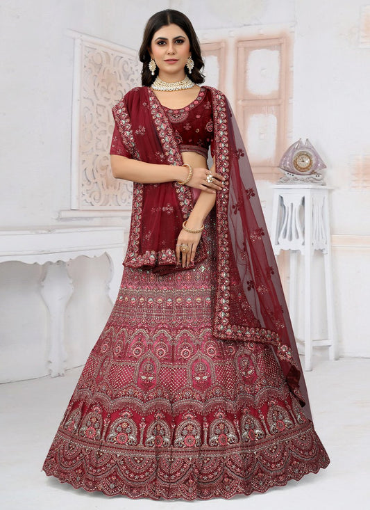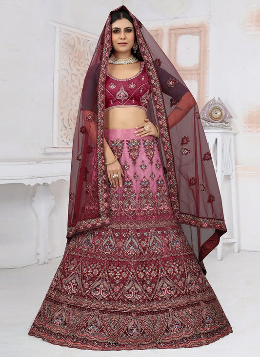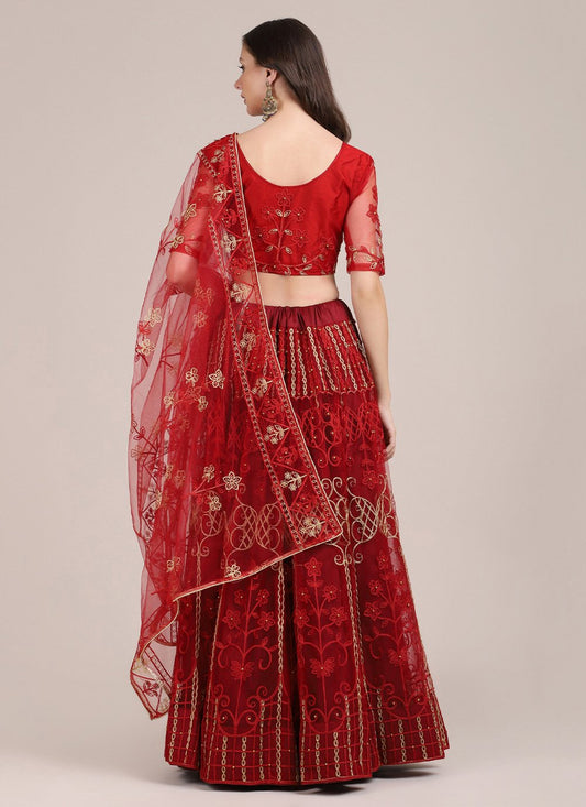 Lehenga Choli Net Maroon Embroidered Lehenga
