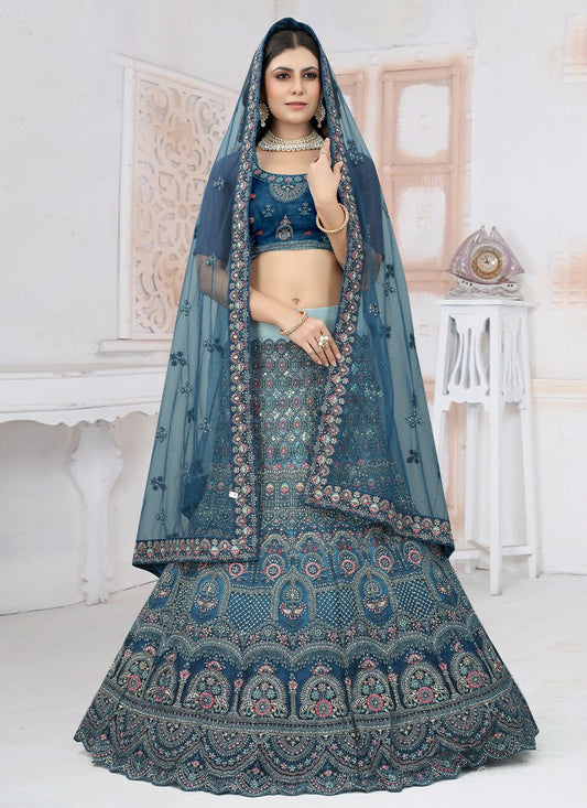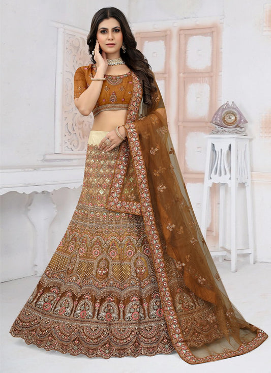 Lehenga Choli Net Mustard Embroidered Lehenga
