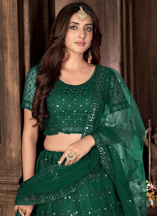 Lehenga Choli Net Green Embroidered Lehenga