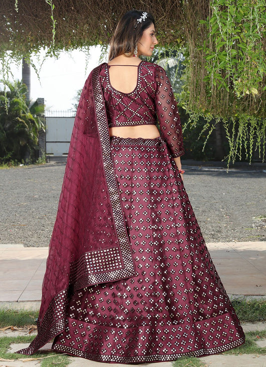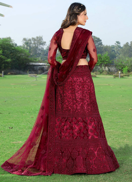 Lehenga Choli Net Wine Embroidered Lehenga