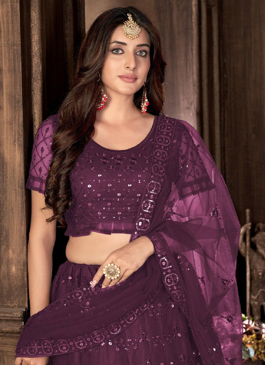 Lehenga Choli Net Purple Embroidered Lehenga