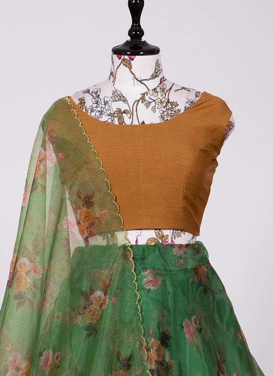 Lehenga Choli Organza Green Floral Patch