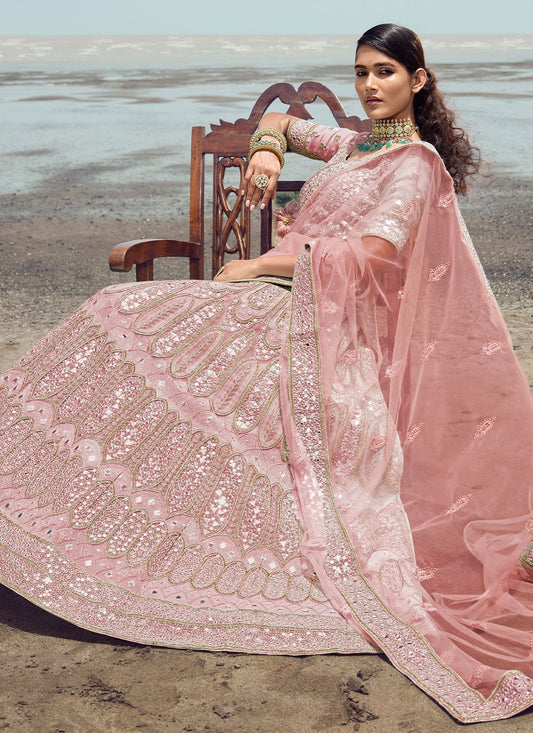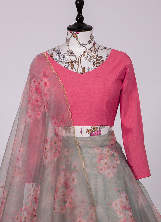 Lehenga Choli Organza Pink Embroidered Lehenga