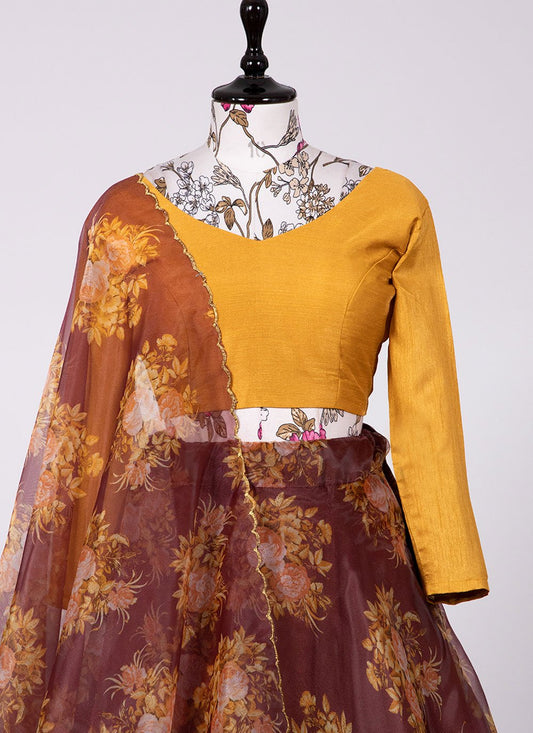 Lehenga Choli Organza Brown Floral Patch