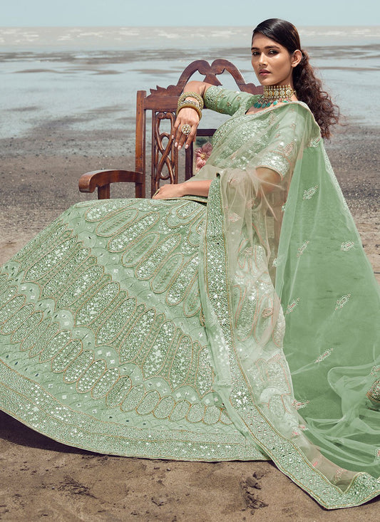 Lehenga Choli Organza Green Embroidered Lehenga