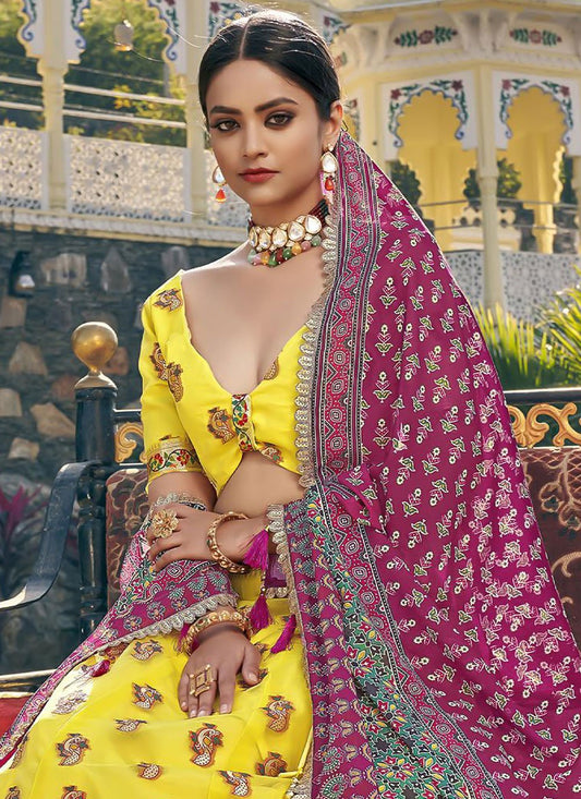 Lehenga Choli Organza Yellow Weaving Lehenga