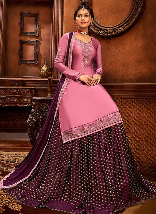 Lehenga Choli Satin Pink Embroidered Lehenga