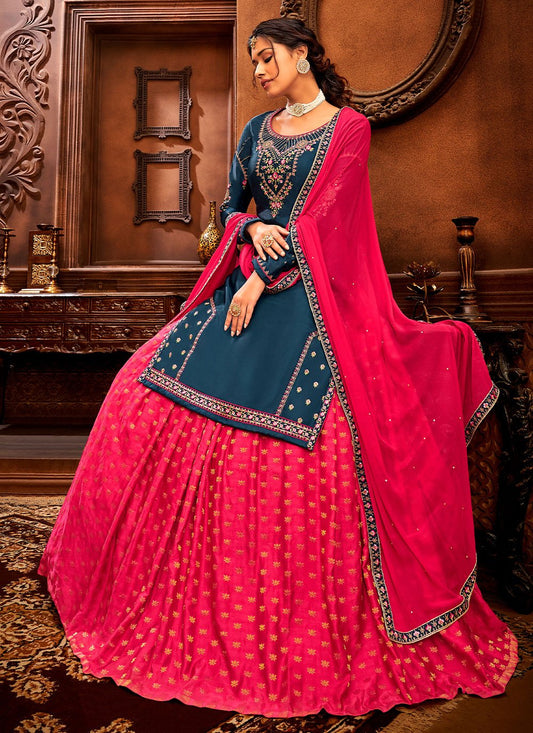 A Line Lehenga Georgette Satin Pink