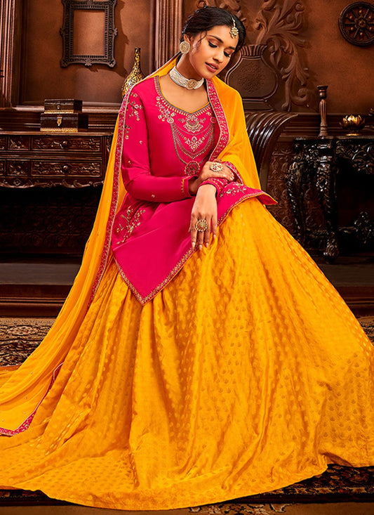 Lehenga Choli Satin Yellow Embroidered Lehenga