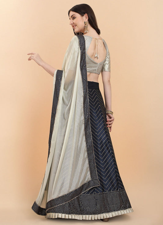 A Line Lehenga Satin Blue Sequins