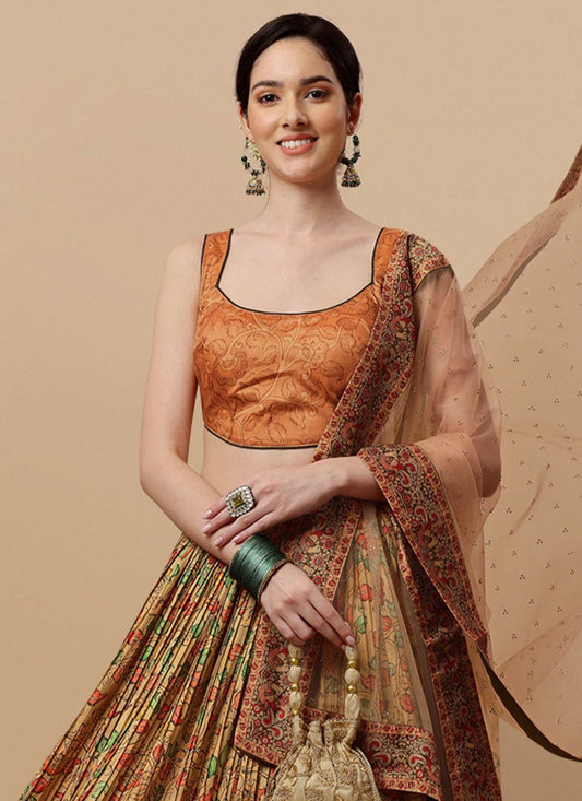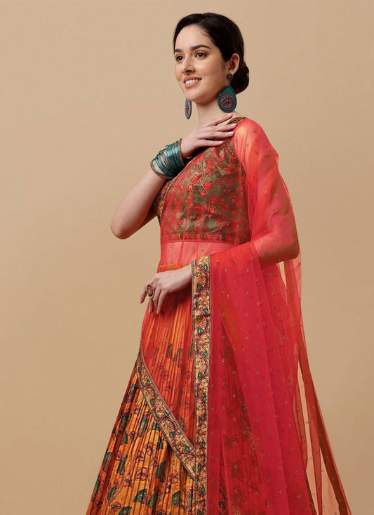 Lehenga Choli Silk Orange Digital Print