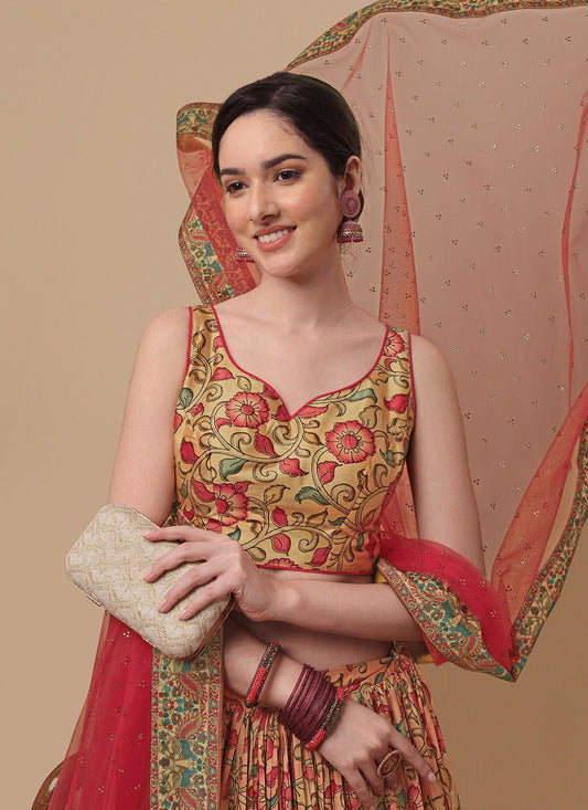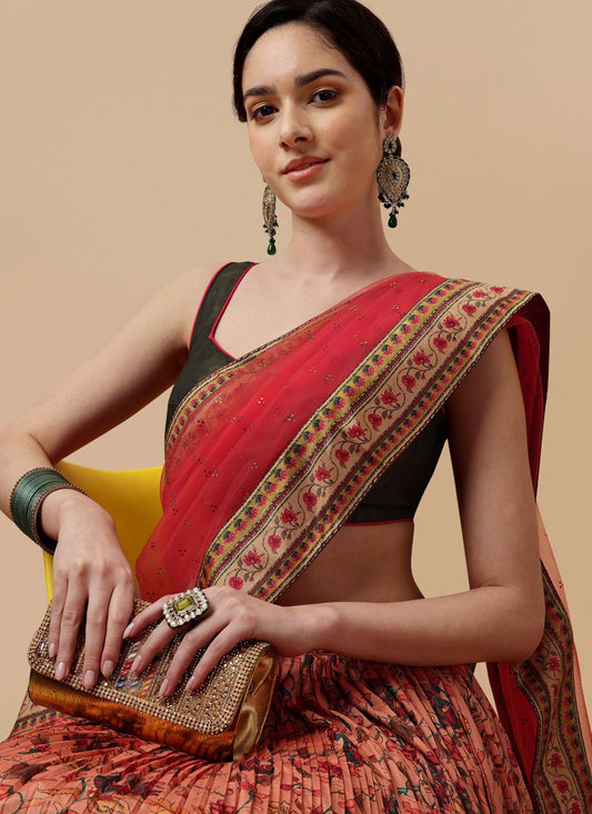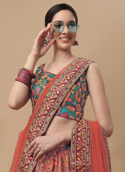 Lehenga Choli Silk Peach Digital Print