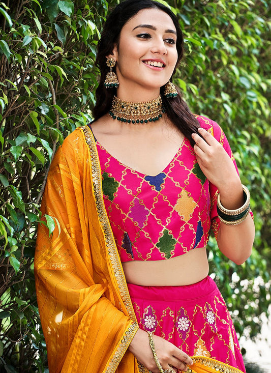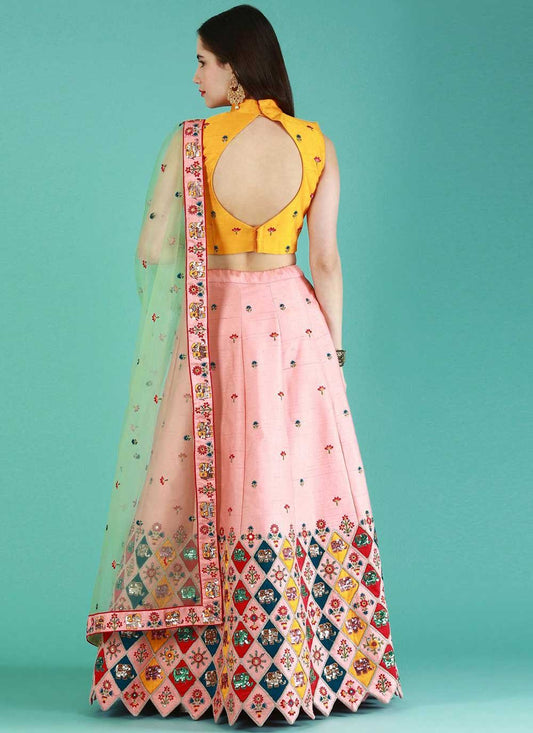 Lehenga Choli Silk Pink Embroidered Lehenga