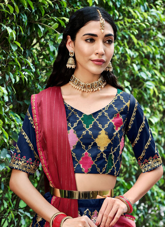 Lehenga Choli Silk Blue Embroidered Lehenga