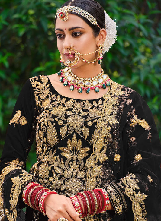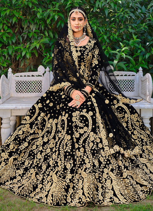 Lehenga Choli Velvet Black Dori Work