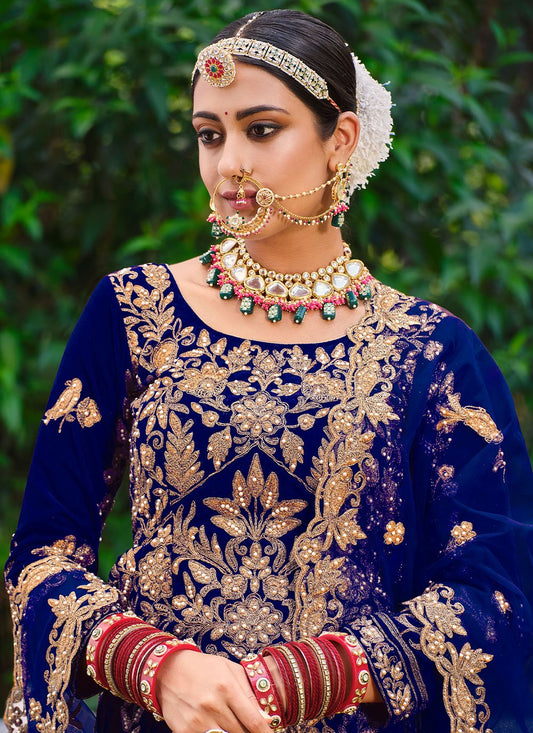 Lehenga Choli Velvet Blue Dori Work