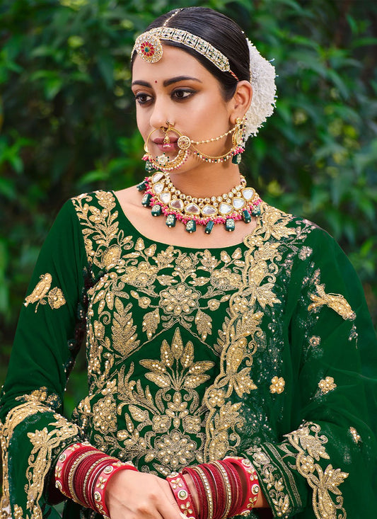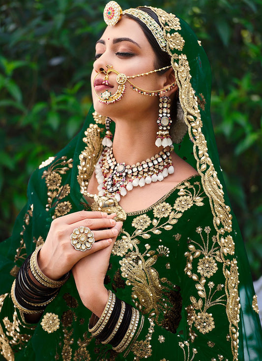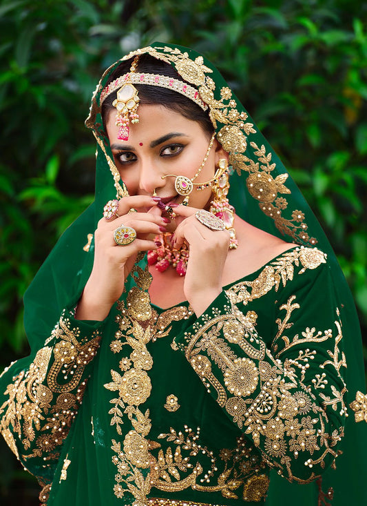 Lehenga Choli Velvet Green Dori Work