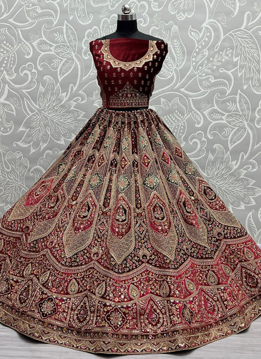Lehenga Choli Velvet Maroon Diamond Lehenga