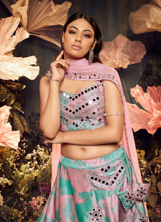 Lehenga Choli Velvet Pink Embroidered Lehenga