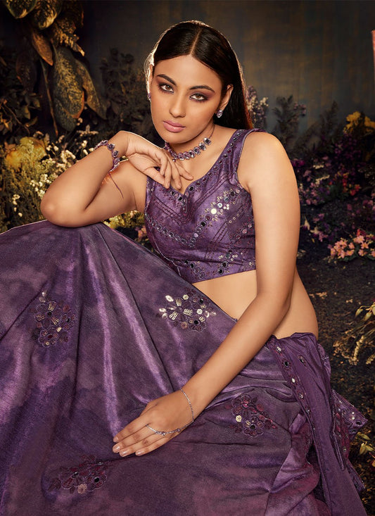 Lehenga Choli Velvet Wine Embroidered Lehenga