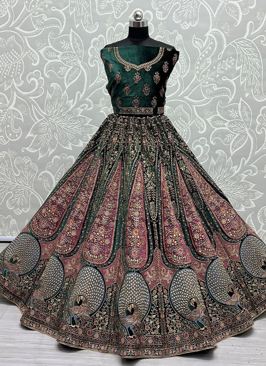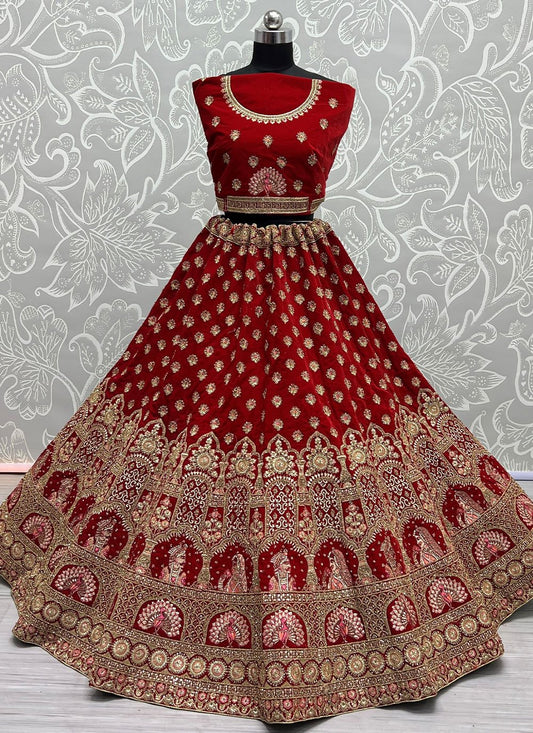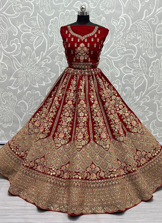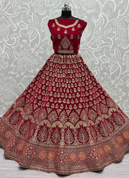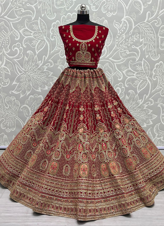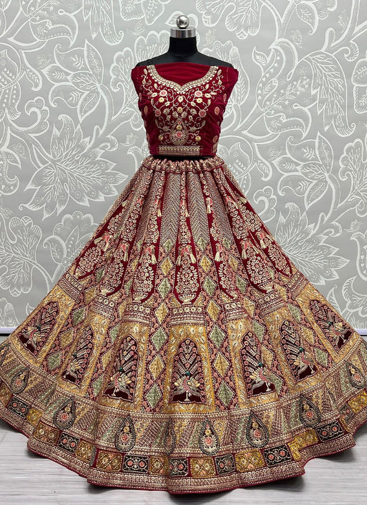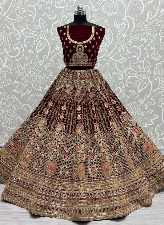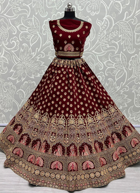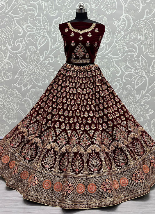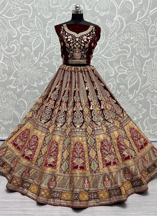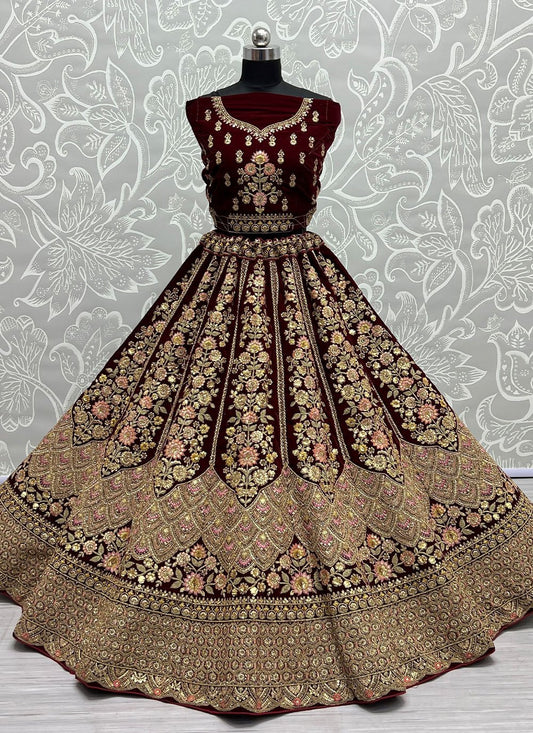 Lehenga Choli Velvet Maroon Diamond Lehenga