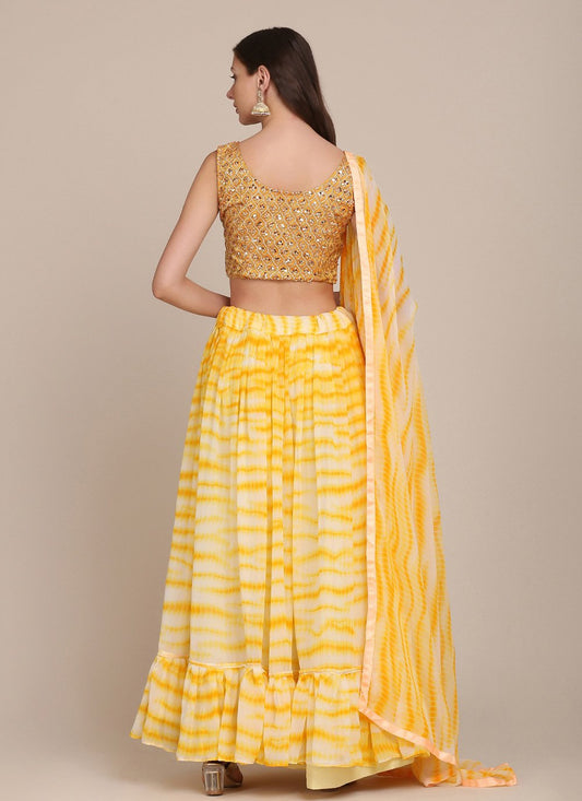 A Line Lehenga Georgette Yellow Print