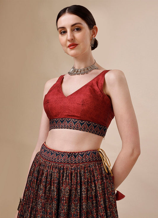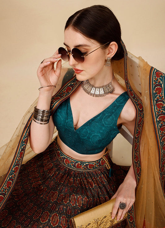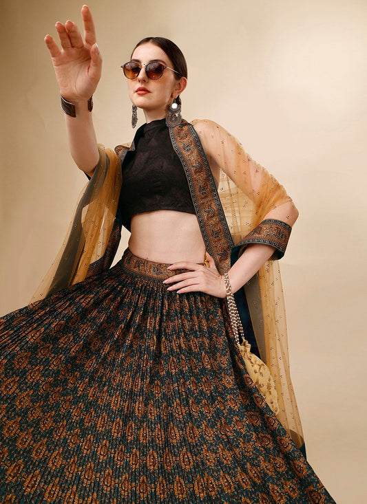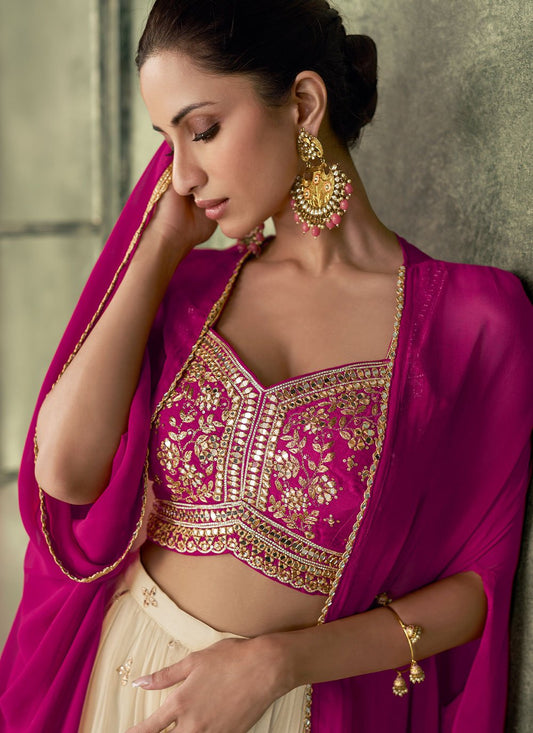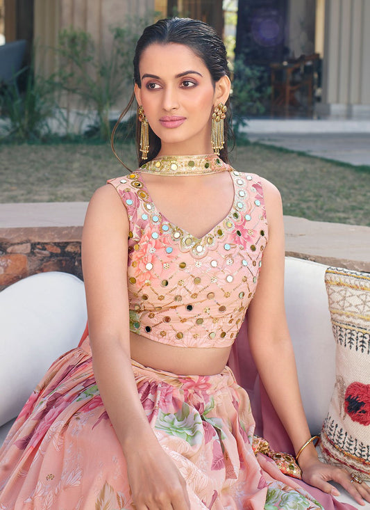Lehenga Choli Georgette Peach Embroidered Lehenga