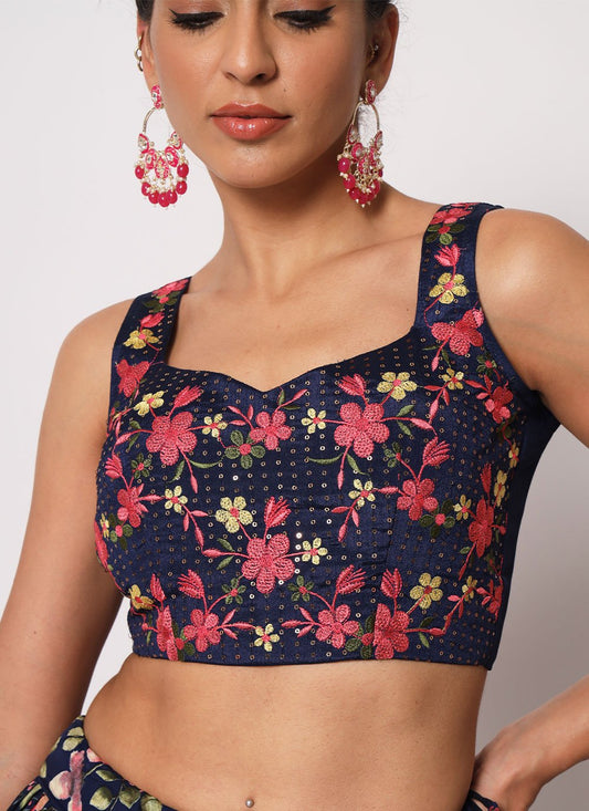 Lehenga Choli Silk Blue Embroidered Lehenga