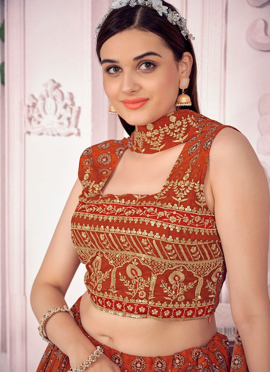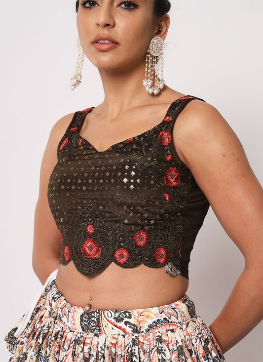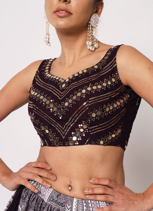 Readymade Lehenga Choli Georgette Brown Embroidered