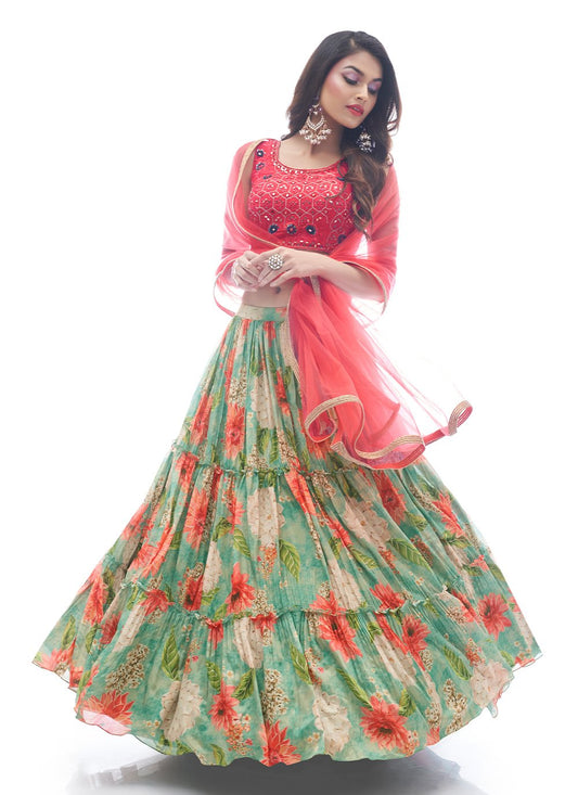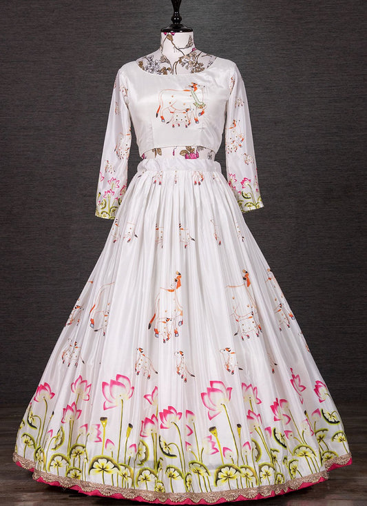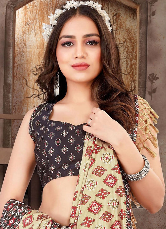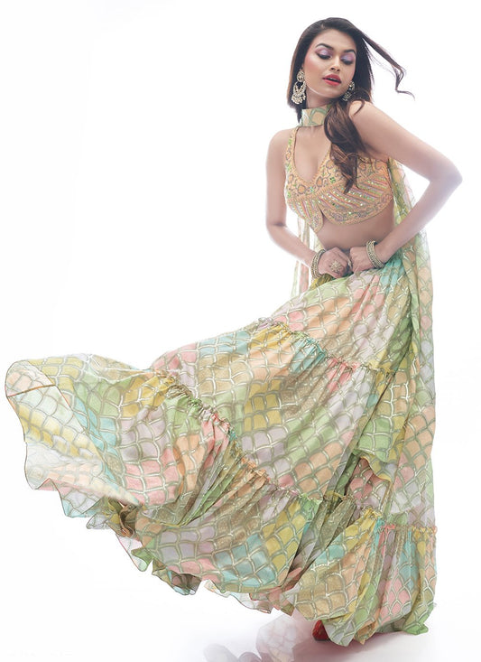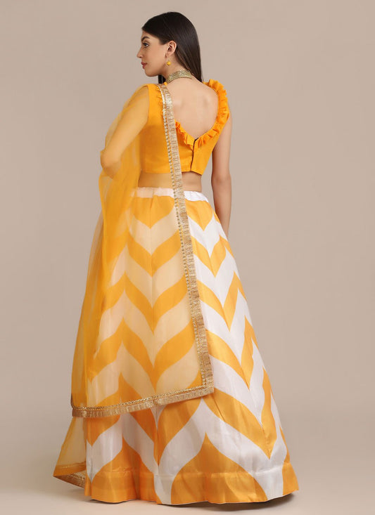 Lehenga Choli Jacquard Yellow Print Lehenga