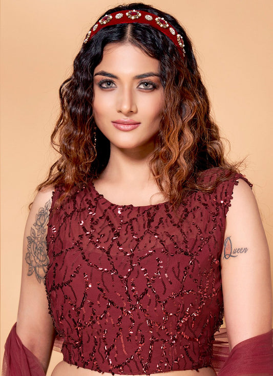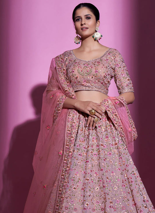 Lehenga Choli Net Pink Sequins Lehenga