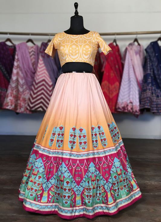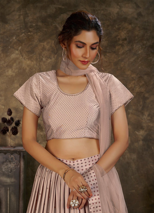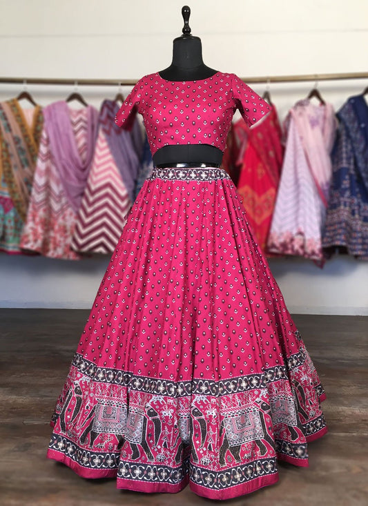 Lehenga Choli Silk Pink Print Lehenga