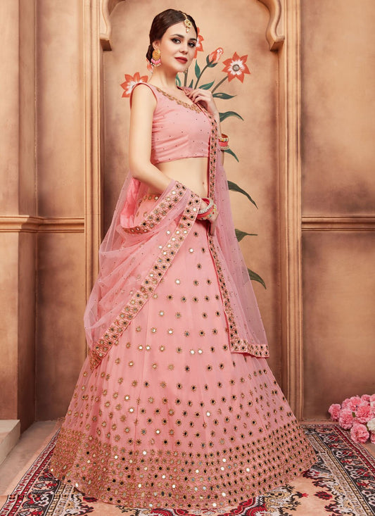 Lehenga Choli Georgette Peach Embroidered Lehenga