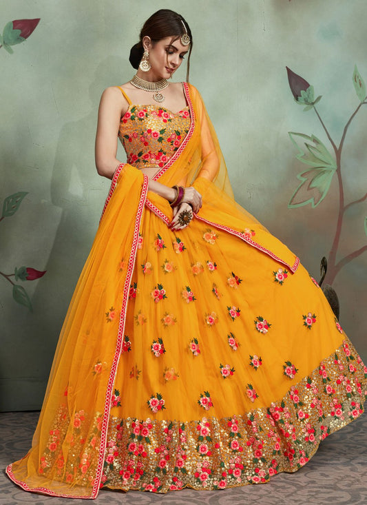Lehenga Choli Velvet Mustard Diamond Lehenga
