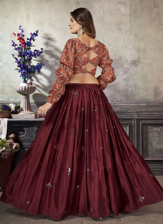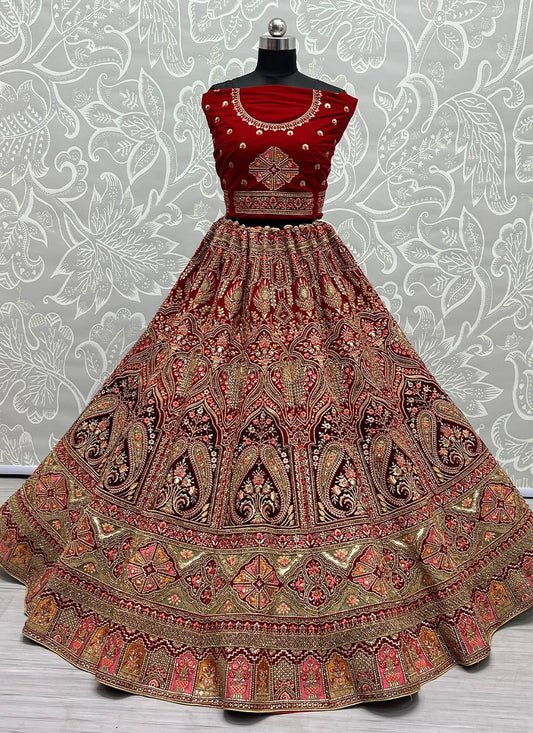Lehenga Choli Velvet Maroon Diamond Lehenga