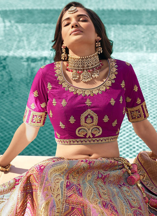 Lehenga Choli Banarasi Silk Purple Embroidered