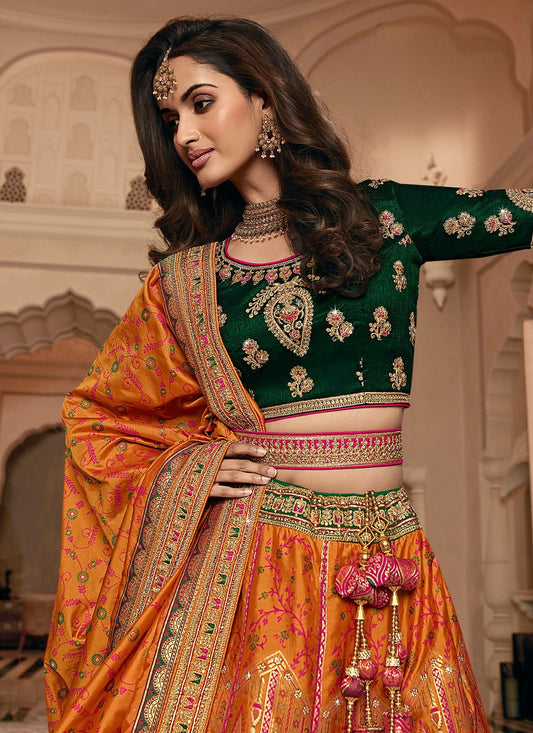 Lehenga Choli Jacquard Silk Mustard Weaving
