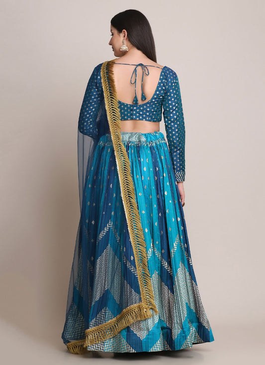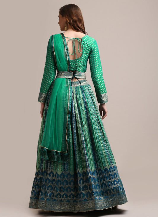 Lehenga Choli Jacquard Blue Woven Lehenga