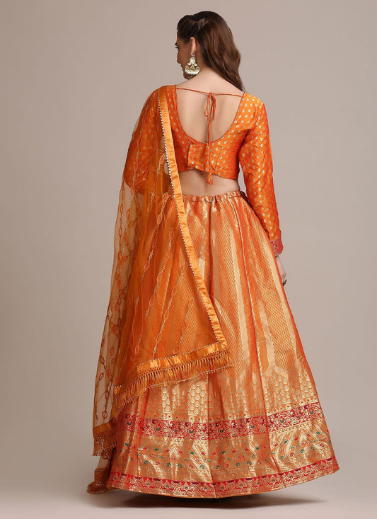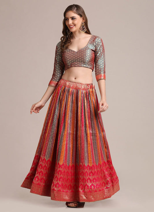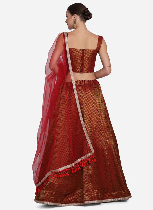 Lehenga Choli Jacquard Maroon Woven Lehenga