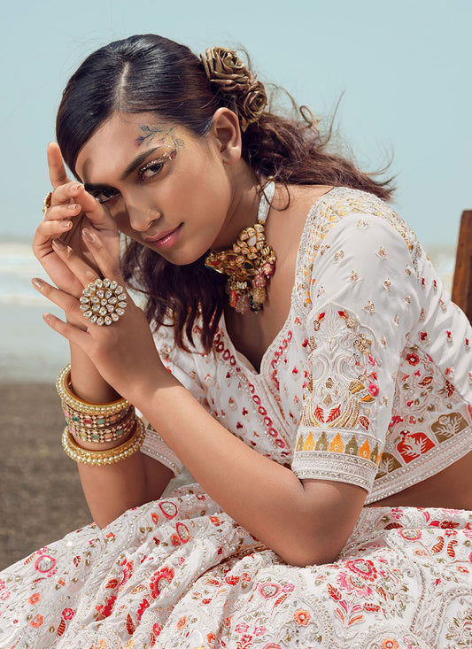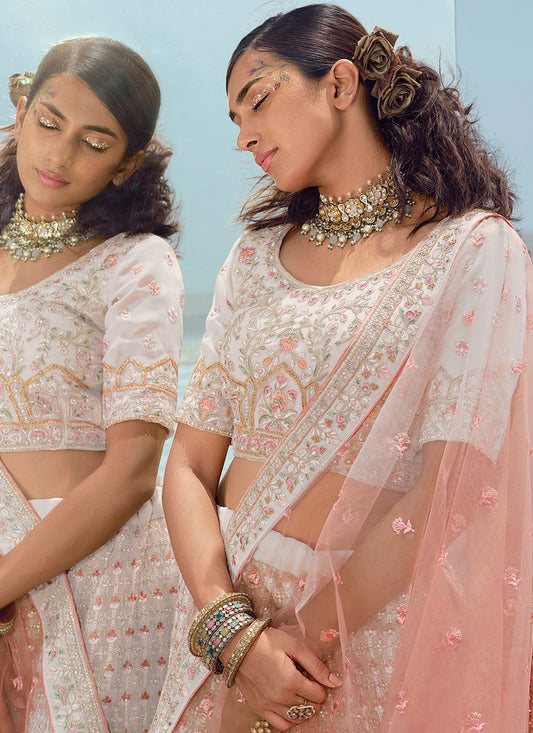 Lehenga Choli Chinon Cream Embroidered Lehenga