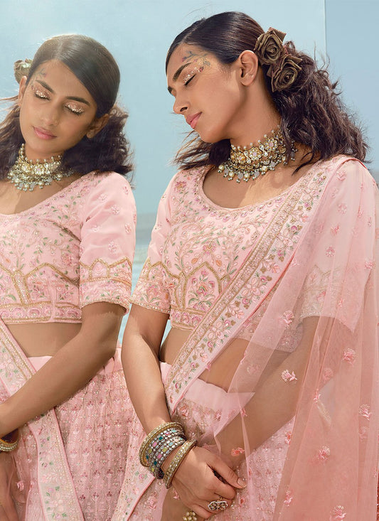 Lehenga Choli Georgette Pink Embroidered Lehenga