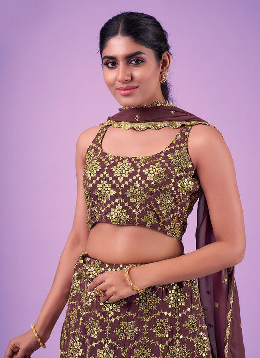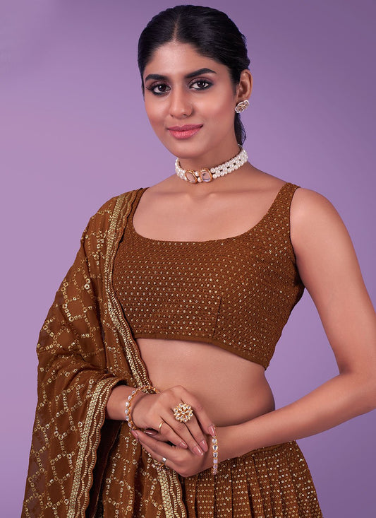 Lehenga Choli Georgette Brown Sequins Lehenga