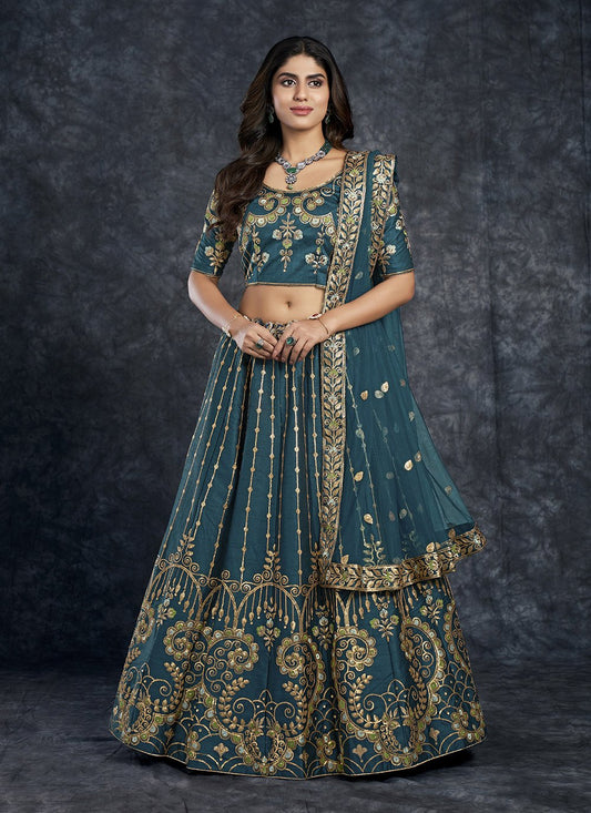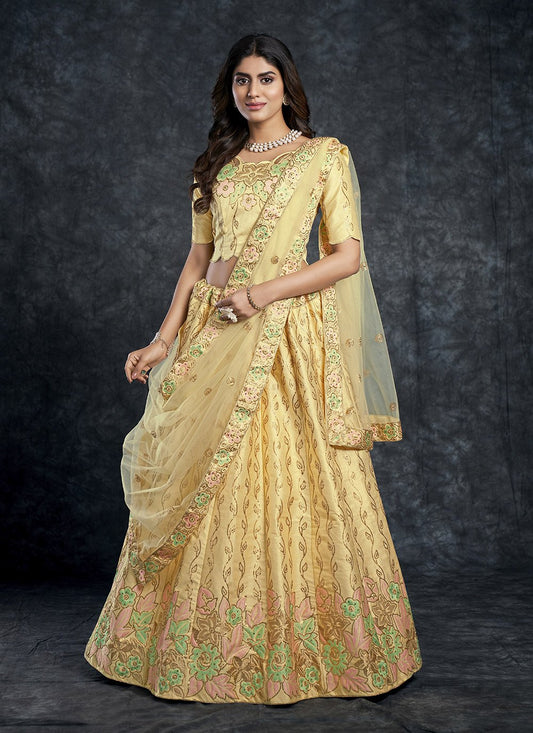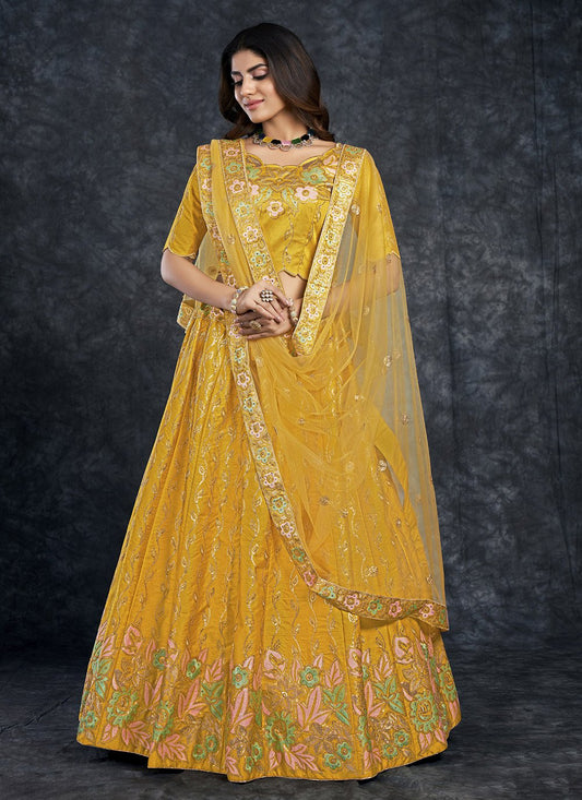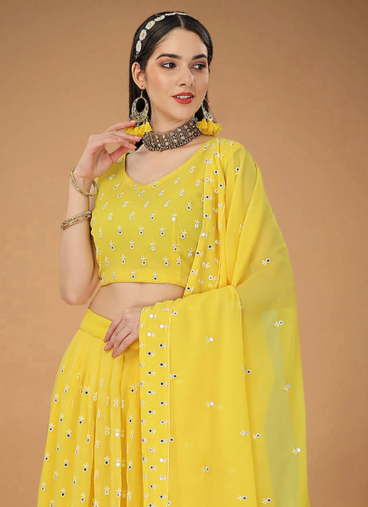 Lehenga Choli Faux Georgette Yellow Embroidered
