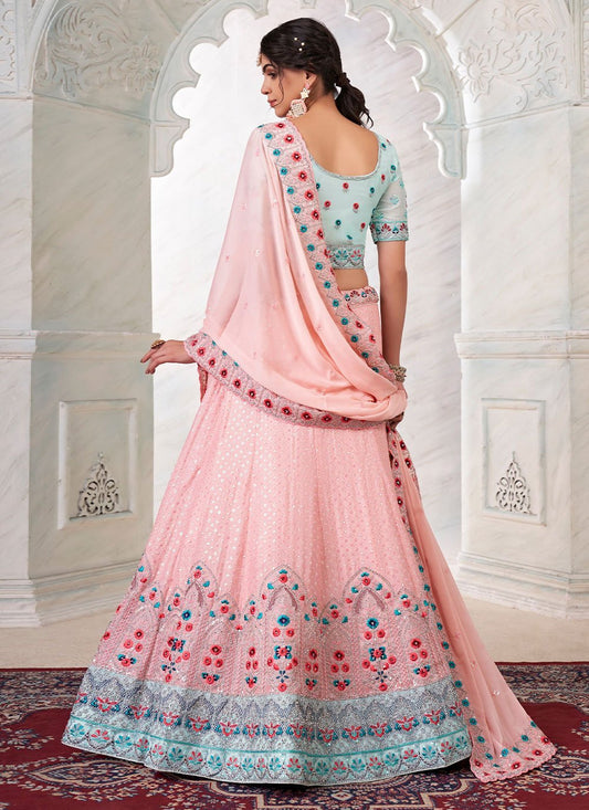 Lehenga Choli Georgette Pink Embroidered Lehenga