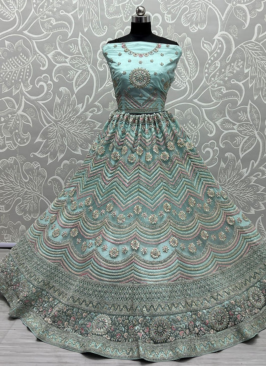 Lehenga Choli Net Aqua Blue Embroidered