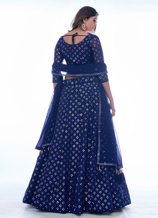 A Line Lehenga Georgette Blue Sequins