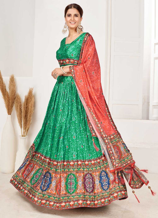 Lehenga Choli Satin Green Digital Print